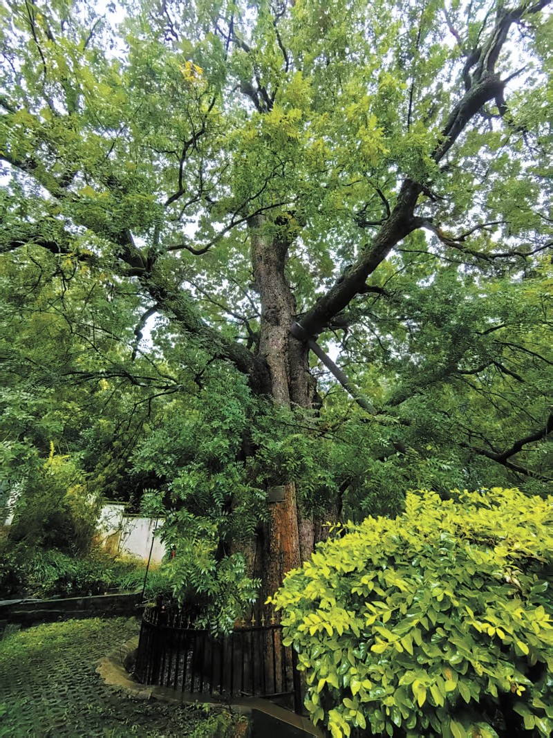 在昆明龙泉寺,高大的黄连木在雨中看起来更加枝舒叶展,生机旺盛。但这株古树因长期生长在石板缝隙中,土壤贫瘠、根系受损,枝叶曾经一度枯萎。